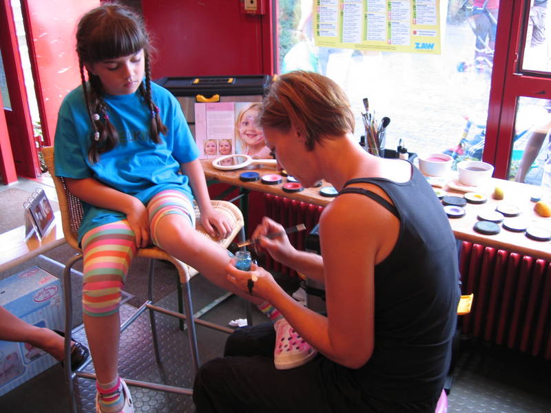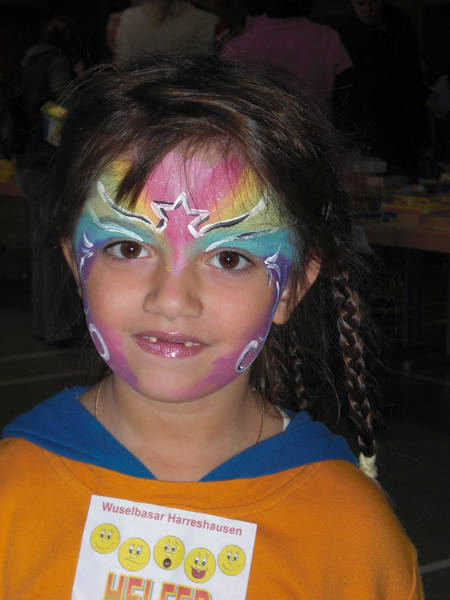 Wir bieten beim Frühjahrs- und Herbstbasar regelmäßig kostenloses Kinderschminken an.